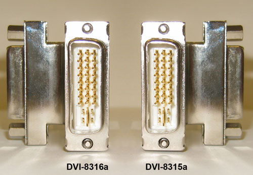 The DVI-8315a and DVI-8316a are high quality Right Angle Adapters designed to enhance DVI cable routing in applications with tight space constraints.